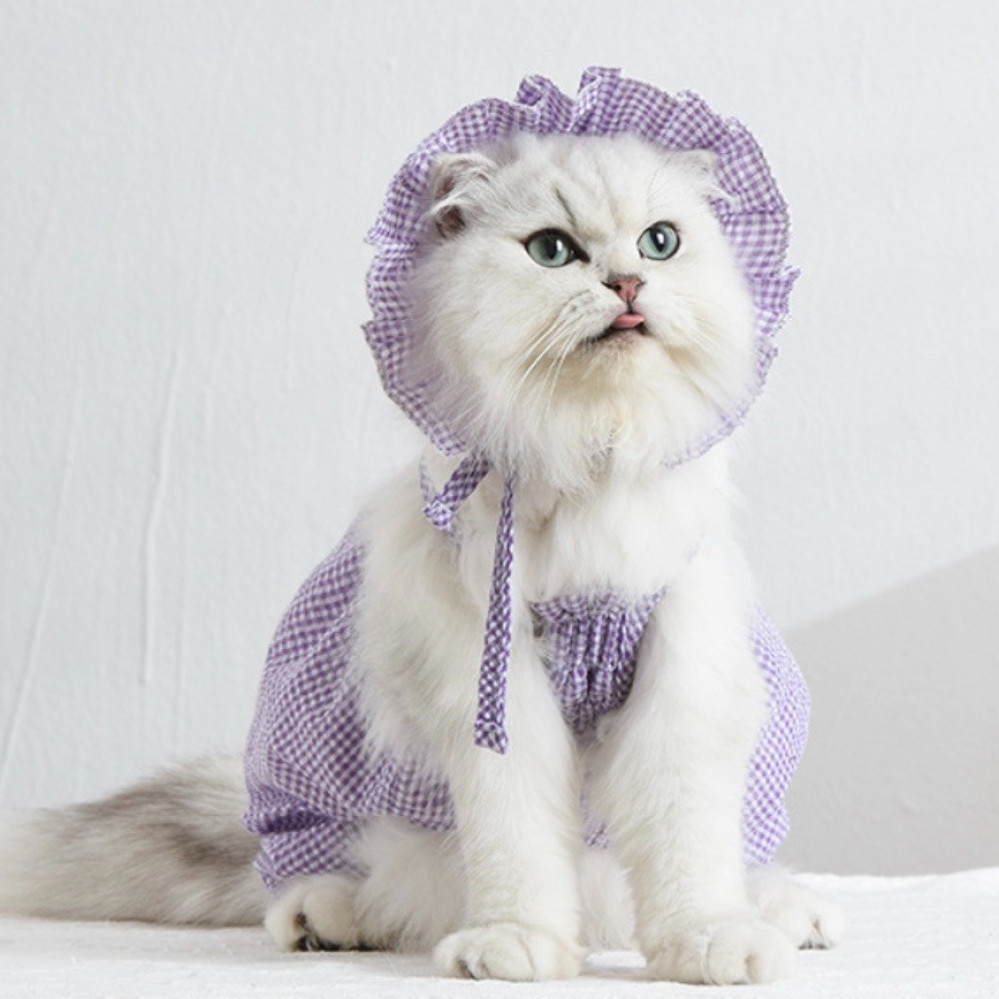 فستان صيفي أنيق للحيوانات الأليفة بلونين جذابين الأسود والبنفسجي، يمنح حيوانك الأليف مظهراً رائعاً ومريحاً خلال الأيام الدافئة. مصمم بمواد عالية الجودة لتوفير راحة كاملة وسهولة الحركة. يتميز هذا الفستان برباط للرأس لمزيد من الجاذبية. مثالي للجولات اليومية والمناسبات الخاصة، مما يجعل حيوانك الأليف مركز الاهتمام.