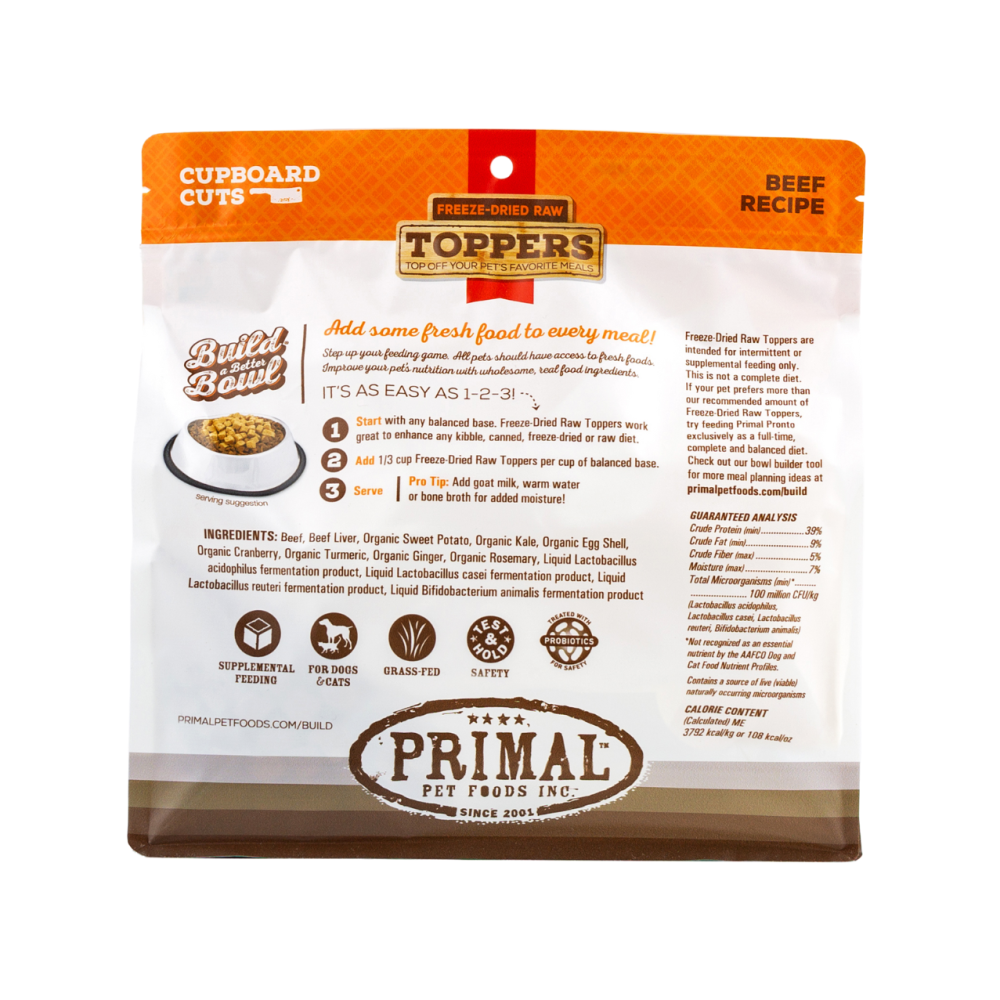 برايمل قطع إضافات الطعام للكلاب والقطط لحم البقر المجففة بالتبريد عالية الجودة