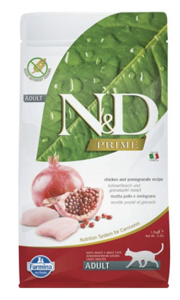 إن آند دي طعام جاف للقطط البالغة بالدجاج والرمان خالي من الحبوب من فارمينا 1.5جم